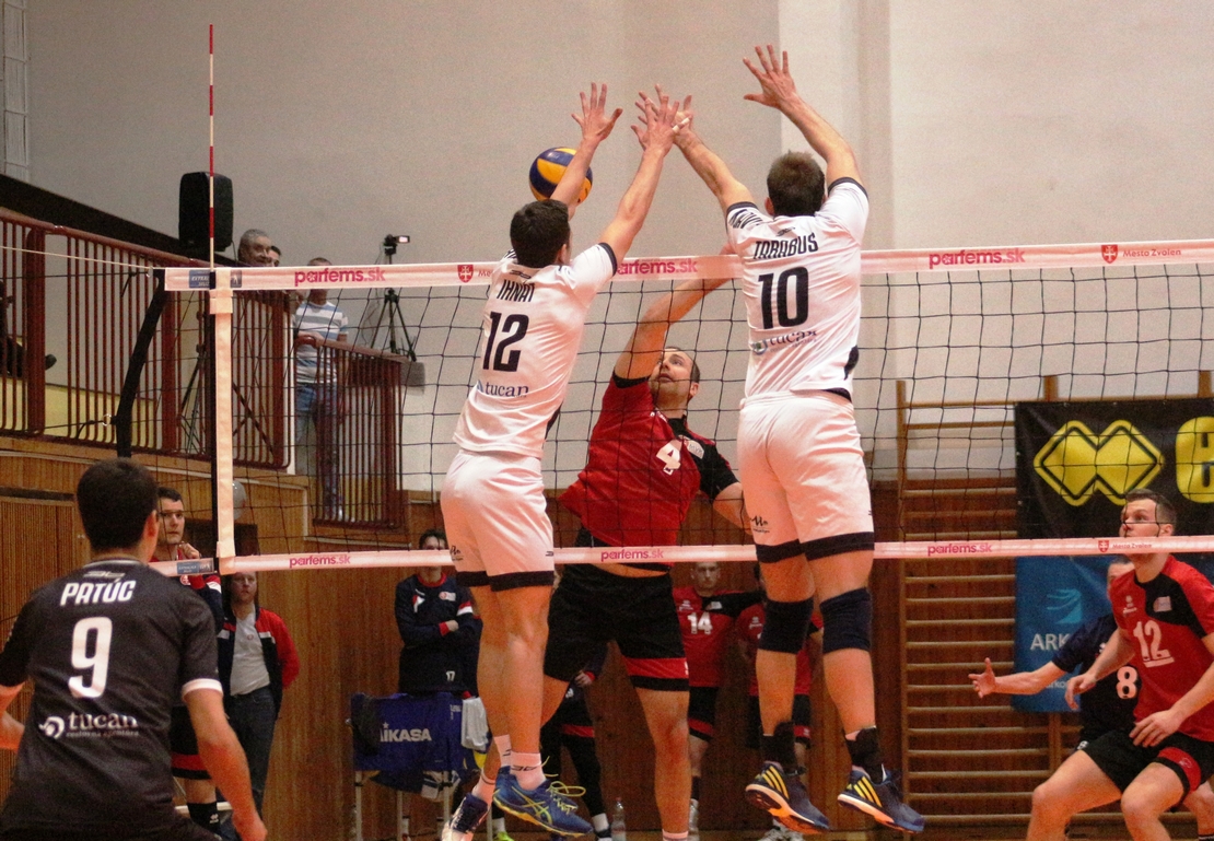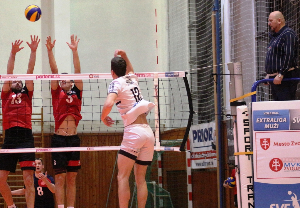 Tretí set bol do polovice vyrovnaný, potom hostia ušli o tri body a boli úspešnejší hlavne na bloku. Zvolenčanom sa síce podarilo znížiť, no Petráš premenil druhý setbal.